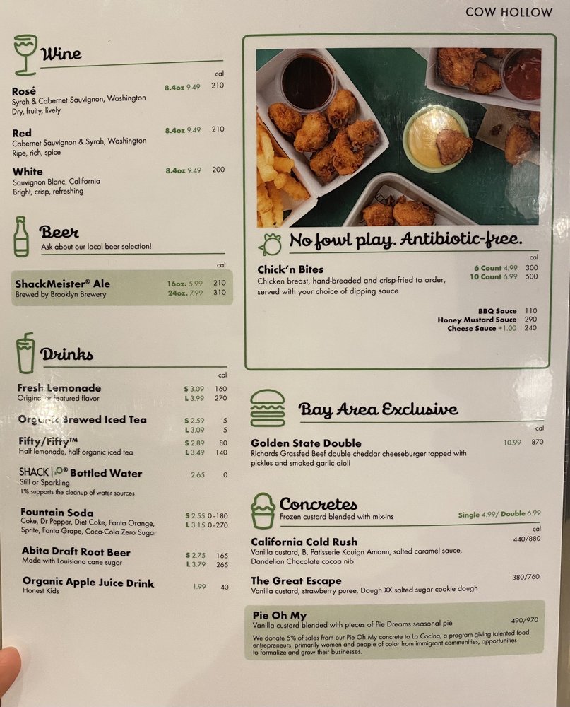 Welcome to Shake Shack Cow Hollow, where gourmet burgers meet a casual, trendy atmosphere. Nestled in the heart of San Francisco, this burger haven is particularly noted for its masterfully crafted ShackBurger, a juicy delight paired with crispy crinkle-cut fries that keep patrons coming back for more.